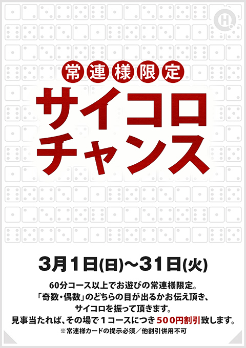 「奇数・偶数」のどちらの目が出るかお伝え頂き、