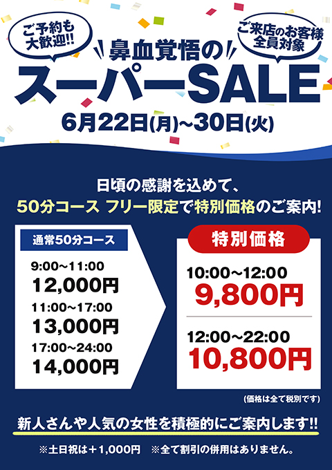 日頃の感謝を込めて、50分コース フリー限定で特別価格のご案内!