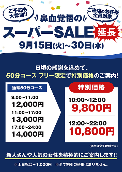 日頃の感謝を込めて、50分コース フリー限定で特別価格のご案内!