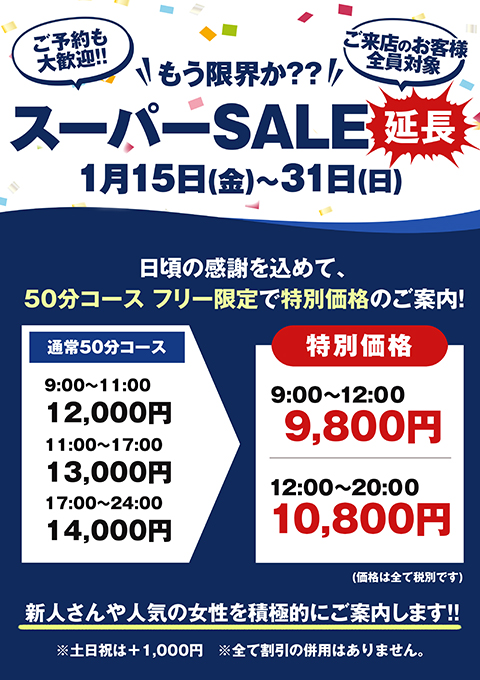 日頃の感謝を込めて、50分コース フリー限定で特別価格のご案内!