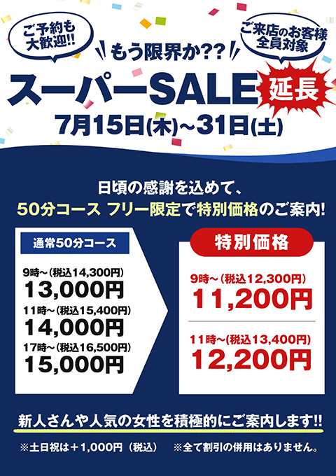 日頃の感謝を込めて、50分コース フリー限定で特別価格のご案内!