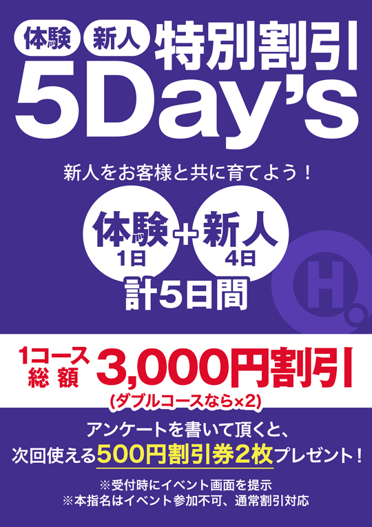 体験・新人 特別割引 5Days