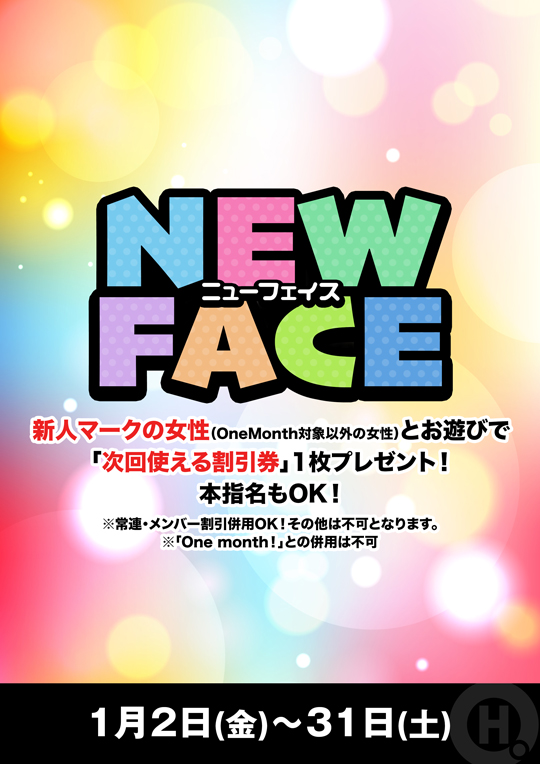 新人マークの女性(OneMonth対象以外の女性)とお遊びで「次回使える割引券」1枚プレゼント!本指名もOK!
