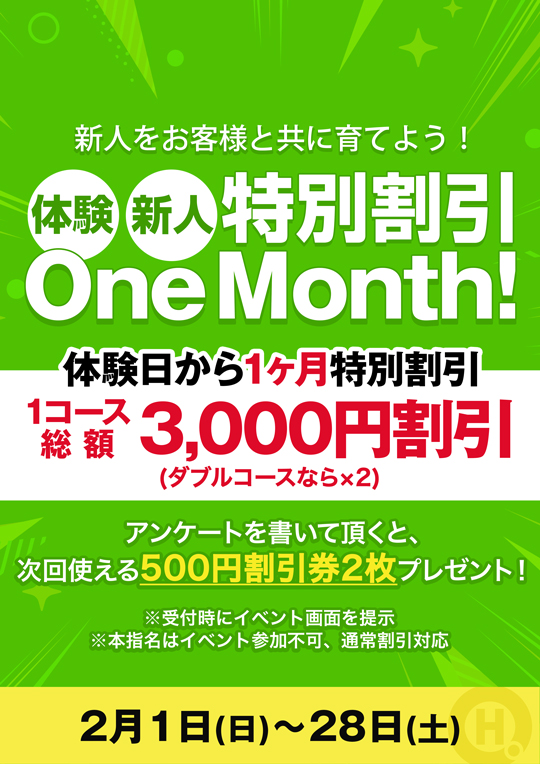 体験・新人 特別割引 One Month!