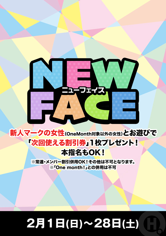 新人マークの女性(OneMonth対象以外の女性)とお遊びで「次回使える割引券」1枚プレゼント!本指名もOK!