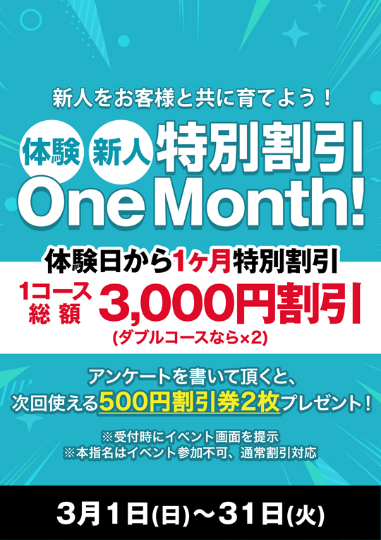 1コース総額:3,000円割引(ダブルコースなら×2)